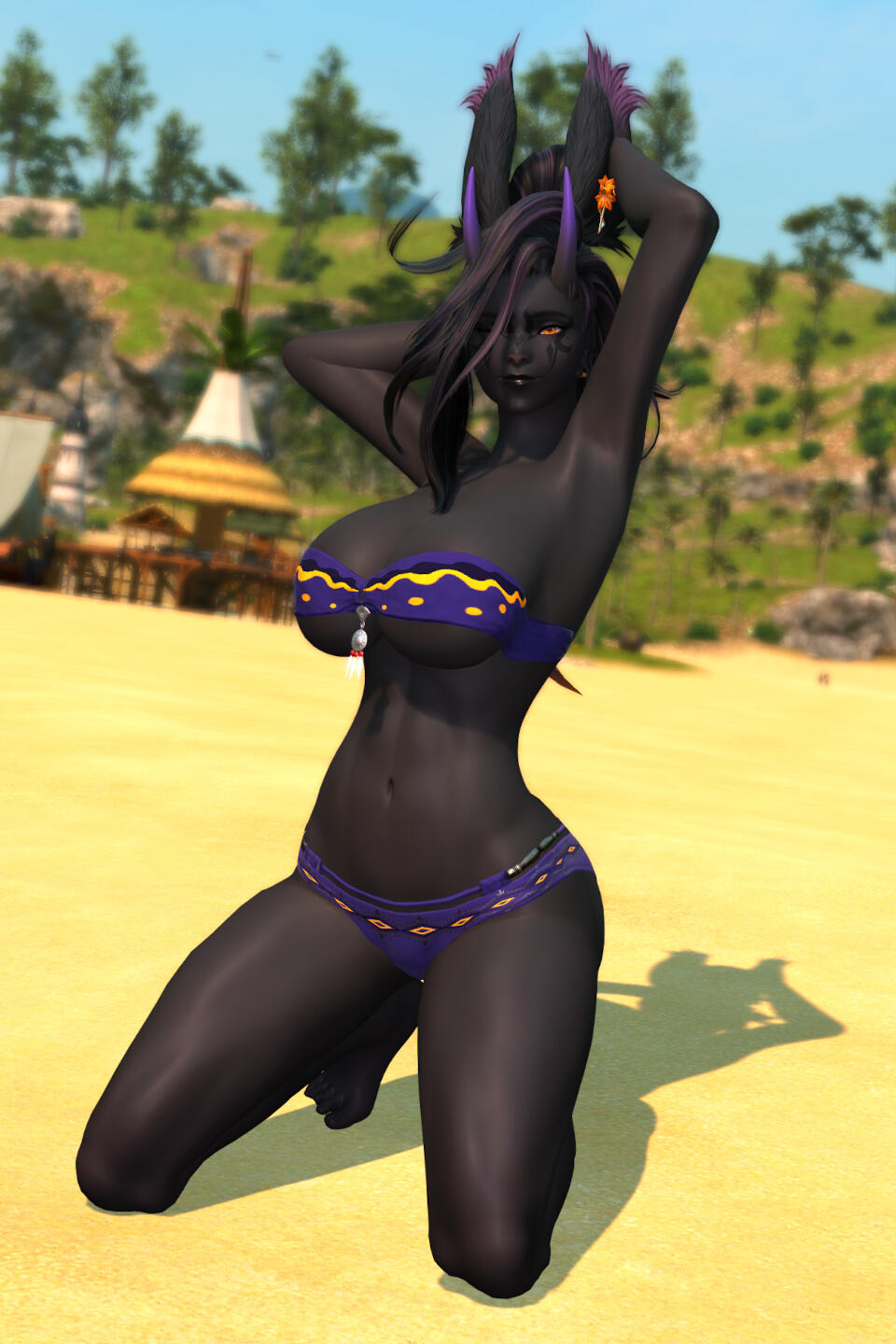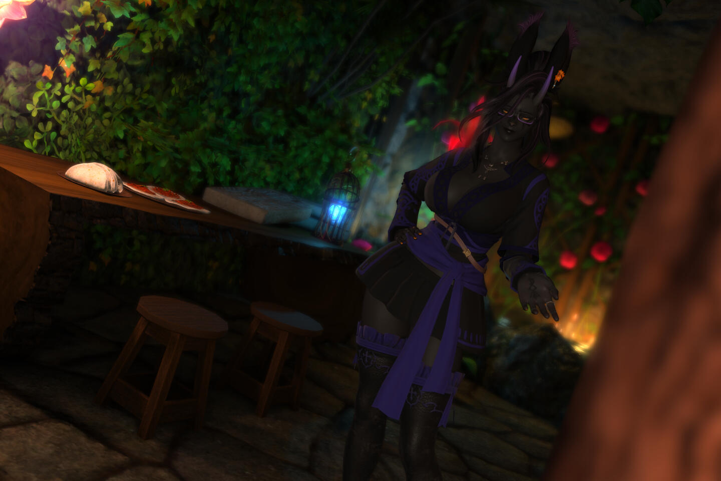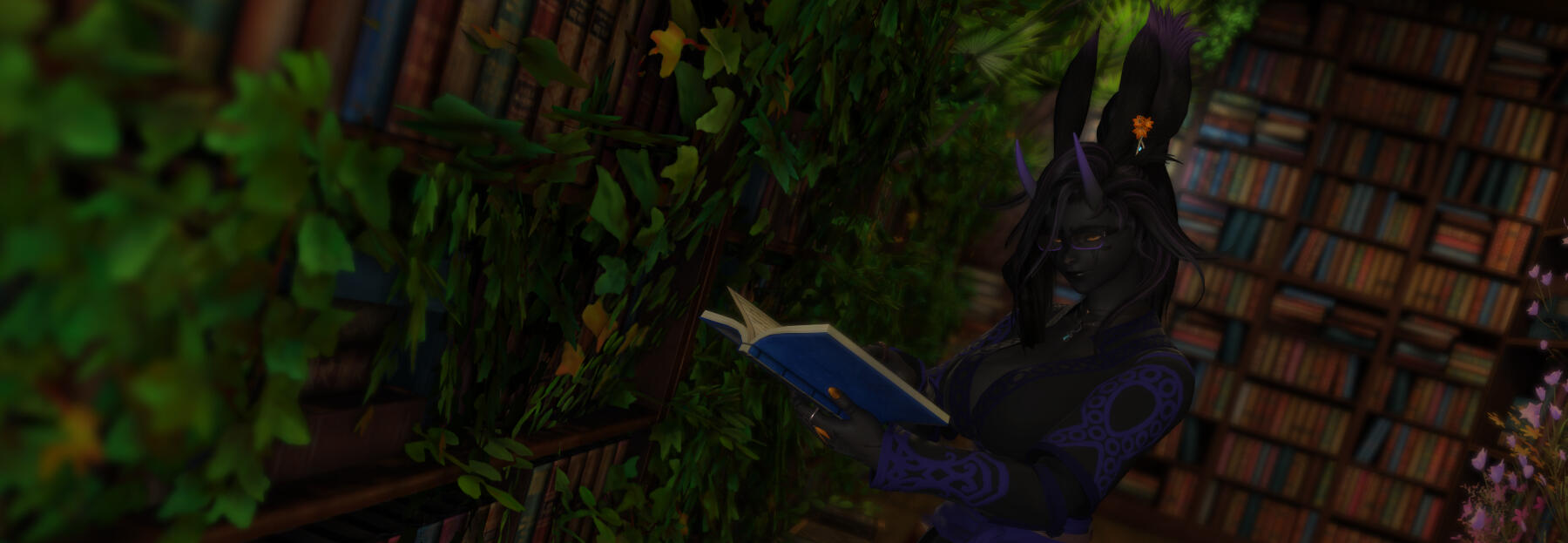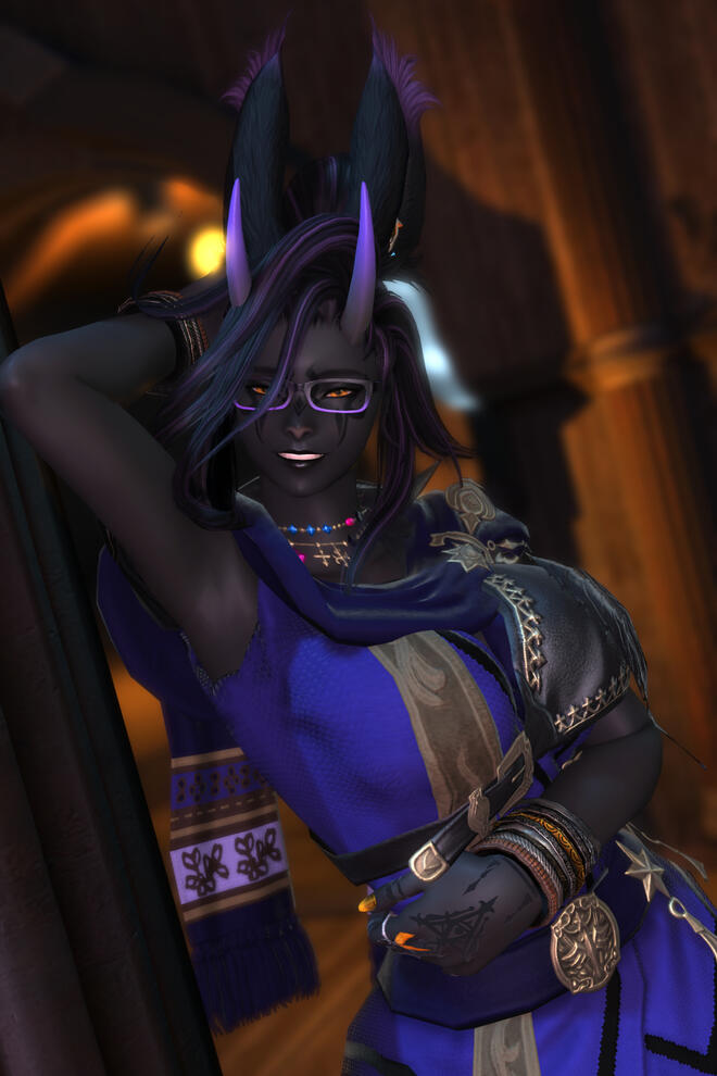 A fae-touched wanderer witch, an anarchic librarian, a chaos gremlin, and queer-as-fuck... Young for a viera, Aisleita was born thirty-some years ago in the Northern Empty, orphaned before being taken in by her adoptive grandfather, Agatoeya Grynehaemrsyn, and a motley crew of other ne'er-do-wells. She grew up among the outcasts and the shunned, forming her basic view of the world in that time.A wild witch, a woman of magicks and alchemy, touched by the wilds and the elements themselves. She's not the sort of witch to wear black makeup, to perform rituals with some coven. She feels just as at-home out in the wilderness of forests, jungles, and coastlines as she does in the comfort of civilization, and draws on knowledge of, and power from, the natural world. Plus she might occasionally cast some spells naked in the wilds for fun.A librarian and archivist, fond of knowledge, books, scrolls, and documents, willing to do whatever it takes to guarantee the preservation, and distribution, of that knowledge to those who need it. Collections kept to seal knowledge away from others are an affront to the way things should be, and anyone who dares consider themselves an arbiter of what should or should not be shared is guilty of enforcing the worst sort of unjust hierarchies. Of course, she's a little unique in her methods of keeping a library. Drop by and wrangle some feral books sometime?Chaos and mischief make life worth living, make the memories of hardships and difficulties fade into the mist. Humour, jokes, roasting, tricks, or even the occasional prank give her joy in ways that few other things ever could. Especially when it's directed towards those she holds dear, the people most deserving of sharing in happiness. ...And the more mean-spirited of chaos and mischief is instead directed towards those who do not deserve happiness, especially those hoarding wealth or knowledge for themselves.And she's hella fucking queer. Especially for her wife, Sumiye. Her fondness for women, and femmes of all genders, may give them a pass into her pants (or lack of pants), at least if they're willing to seize it. Men, on the other hand, typically must be providing something of value (or keeping her away from something of value) to draw almost any of her interest. Though there is interest, plenty of it, bubbling within. She likes giving pleasure and, while she keeps many thoughts to herself, often fantasizes wildly. Her interest should not be assumed, of course... But it never hurts to ask.