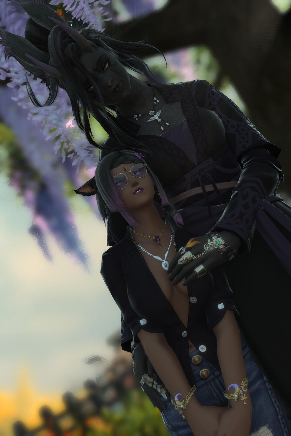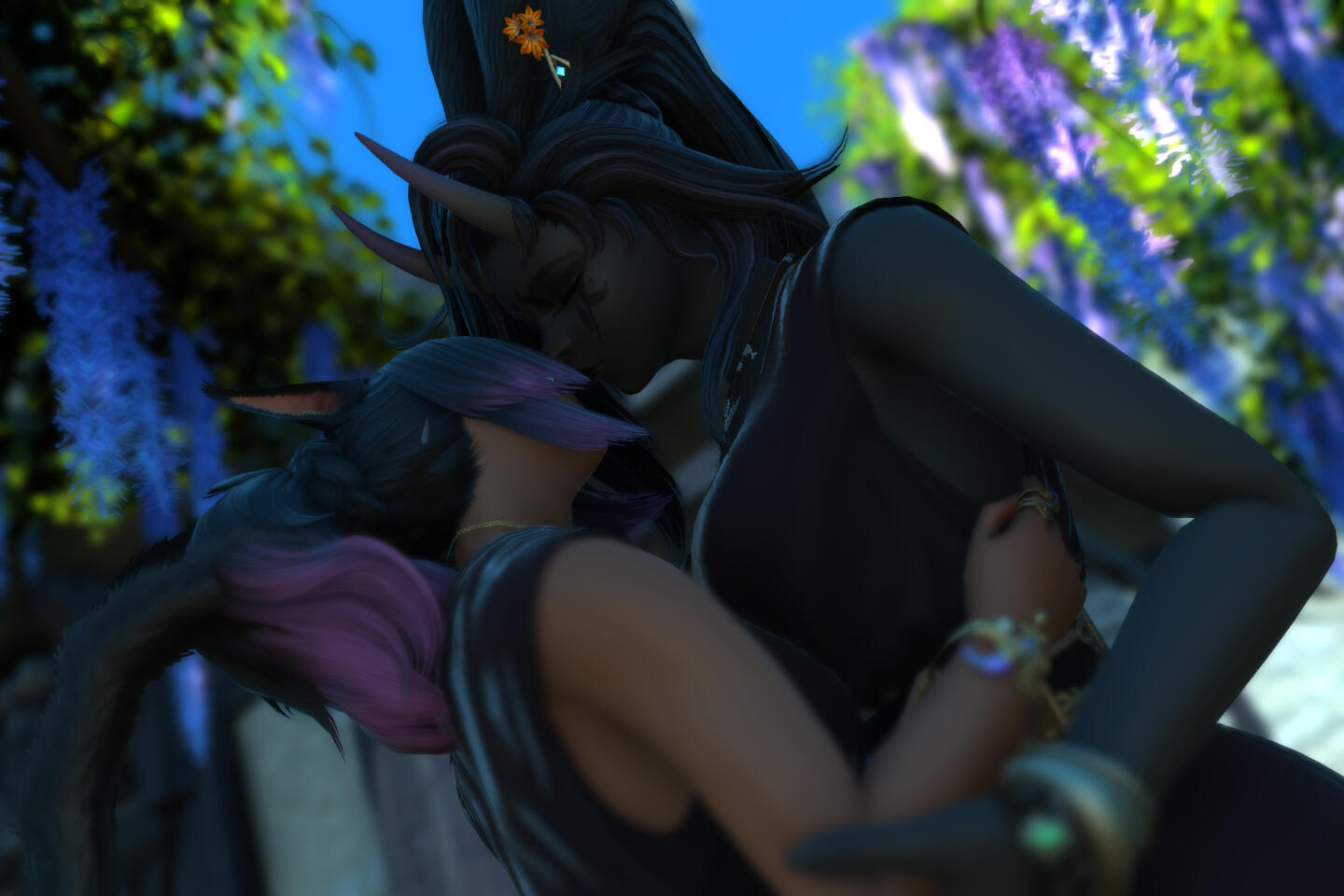 A fae-touched wanderer witch, an anarchic librarian, a chaos gremlin, and queer-as-fuck... Young for a viera, Aisleita was born thirty-some years ago in the Northern Empty, orphaned before being taken in by her adoptive grandfather, Agatoeya Grynehaemrsyn, and a motley crew of other ne'er-do-wells. She grew up among the outcasts and the shunned, forming her basic view of the world in that time.A wild witch, a woman of magicks and alchemy, touched by the wilds and the elements themselves. She's not the sort of witch to wear black makeup, to perform rituals with some coven. She feels just as at-home out in the wilderness of forests, jungles, and coastlines as she does in the comfort of civilization, and draws on knowledge of, and power from, the natural world. Plus she might occasionally cast some spells naked in the wilds for fun.A librarian and archivist, fond of knowledge, books, scrolls, and documents, willing to do whatever it takes to guarantee the preservation, and distribution, of that knowledge to those who need it. Collections kept to seal knowledge away from others are an affront to the way things should be, and anyone who dares consider themselves an arbiter of what should or should not be shared is guilty of enforcing the worst sort of unjust hierarchies. Of course, she's a little unique in her methods of keeping a library. Drop by and wrangle some feral books sometime?Chaos and mischief make life worth living, make the memories of hardships and difficulties fade into the mist. Humour, jokes, roasting, tricks, or even the occasional prank give her joy in ways that few other things ever could. Especially when it's directed towards those she holds dear, the people most deserving of sharing in happiness. ...And the more mean-spirited of chaos and mischief is instead directed towards those who do not deserve happiness, especially those hoarding wealth or knowledge for themselves.And she's hella fucking queer. Especially for her wife, Sumiye. Her fondness for women, and femmes of all genders, may give them a pass into her pants (or lack of pants), at least if they're willing to seize it. Men, on the other hand, typically must be providing something of value (or keeping her away from something of value) to draw almost any of her interest. Though there is interest, plenty of it, bubbling within. She likes giving pleasure and, while she keeps many thoughts to herself, often fantasizes wildly. Her interest should not be assumed, of course... But it never hurts to ask.